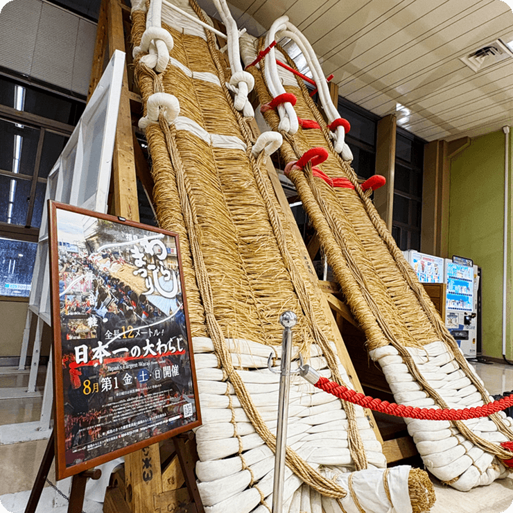 長さ12m、幅1.4mの日本一巨大なわらじを担いで街を歩きます。重さは約2トンと迫力がすごいです!