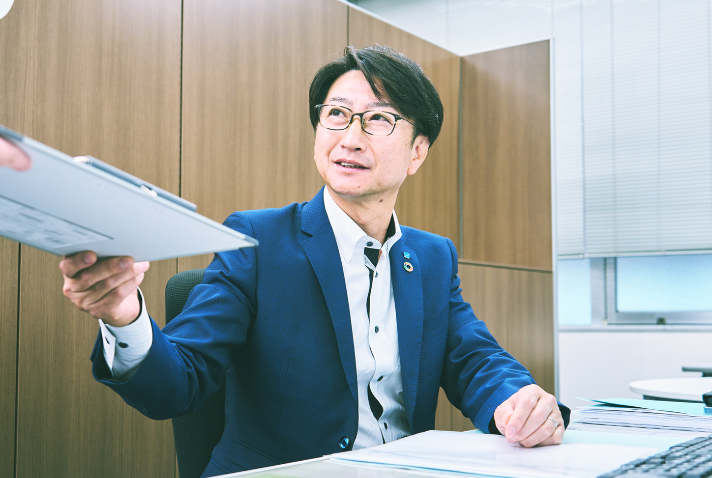 本店営業部は仙台市青葉区北目町のろうきん本部ビル2階にあり、東北労働金庫発足当初から現在の場所にて営業を行っています。所属職員は40名を超え、日々地域の皆様のため奮闘しています。部長として営業部全体のマネジメントに携わる中で、一人ひとりが自分の意見を出し、自発的に行動できるような雰囲気づくりを心がけています。個々人が自分らしく能力を発揮することで、地域に暮らす多くの方に信頼され、豊かさを届けられる、そんな営業部を作る意識で日々の業務に臨んでいます。