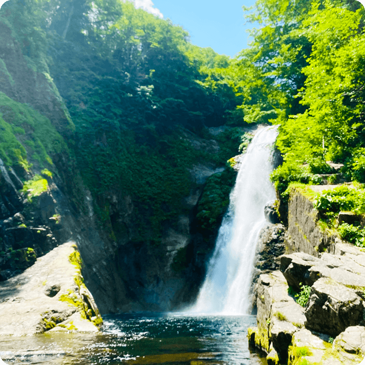 日本三名瀑の一つとも言われ、国の名勝にも指定。滝見台からの大滝は迫力満点で、紅葉の時期もおすすめです。