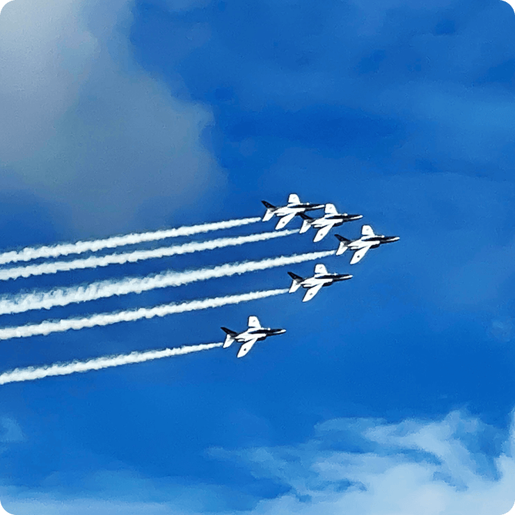 ブルーインパルスの本拠地らしく、「訓練飛行」と「展示飛行」の2回を楽しめるのが最大の魅力です。