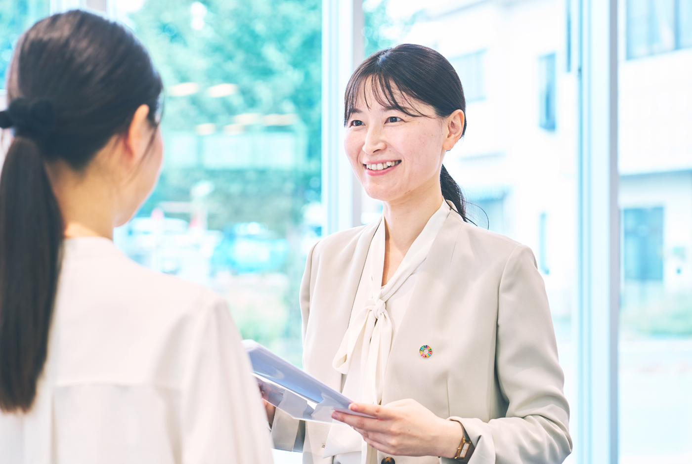 お客様に応対させていただく場面では「お客様と'一緒に'考える」という姿勢を大切にしています。お客様によって心地良い距離感や信頼を寄せていただけるまでのお時間は様々です。特に資産運用のご相談では、関心を持たれてすぐにご来店いただく方や、将来のライフプランに少し不安をお持ちで「まずはろうきんに相談してみよう」と思っていただき、ご来店されるお客様がたくさんいらっしゃいます。時にはお仕事やプライベートのお話も交えながら、頭の中にある、関心やご心配ごとを具体的にイメージいただけるよう、そして、お客様お一人おひとりのご要望・ご希望に添ったご提案ができるよう心がけています。