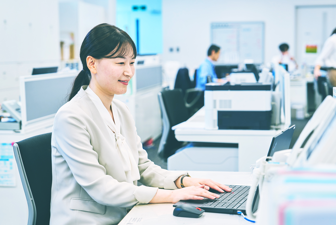 事務部門の次長代理として、主に書類や伝票の点検・管理業務を行っています。また、窓口担当にサポートが必要であれば窓口に、伝票処理が立て込んでいれば後方事務にも携わり、「プレイングマネージャー」の職務と役割を担いながら、日々仕事を行っています。時には少々複雑なご相談や資産形成のご相談などで、じっくりお客様とお話をさせていただく場面もありますが、お帰りの際にはご満足いただき、後日追加のご相談や、ご家族やお知り合いの方にご紹介いただいた時は、とても嬉しい気持ちになります。